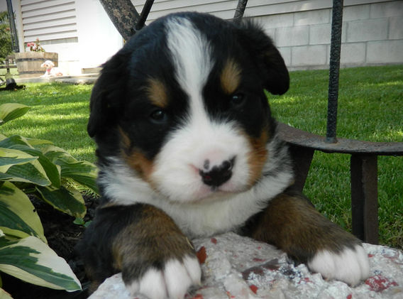 "North Country King of the Canyon" is the handsome sire. He is AKC registered. He is genetically Clear for the Berner panel and OFA Good on his hips. Canyon weighs 110lbs.